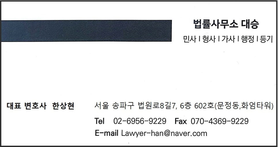 저희 한상현 변호사 사무소는 민사전문 형사전문으로 전국법원소송 비대면소송이 가능합니다. 기타 문의는 언제든 전화주세요. 친절히 안내해 드리겠습니다.